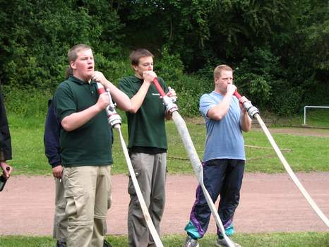 Dies ist nicht die allwöchentliche Spielprobe des Alphornbläservereines Siegerland e.V., sondern die Mannschaft des Schützenvereines in Aktion! |