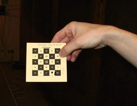 Links ein Abbild der "Lizenz" ... eine sogenannte "Glücksscheibe". Die Regeln sind jedes Jahr dieselben: Jeder Schütze hat 5 Schuss zur Verfügung, welche er nacheinander mit einem Luftgewehr auf eine Entfernung von 10 Meter ins Ziel bringt. Beachtung sollten dabei jeweils die schwarzen Eckfelder finden, da diese mit 21, 22, 23 und 24 Punkten am meisten einbringen. Schlecht hingegen ist es die Mitte zu treffen, da diese einem 10 Minuspunkte einbringt. Setzt man eine Kugel genau zwischen 2 oder gar mehrere Felder, so werden die Punkte dieser zusammenaddiert. | |||||||||||||||||||||||||||||||||||||||||||||||||||||||||||||||||||||||||||||||||