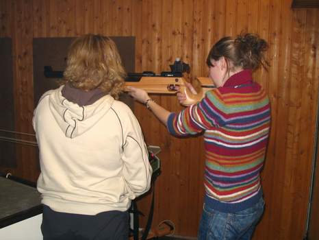 Geschossen wurde auf unserem Luftdruckwaffenstand, welcher an diesem Abend zusätzlich durch eine Stahlwand von den anderen Räumlichkeiten und Festivitäten abgeschirmt wurde. Zur Sicherheit dürfte nur einzeln eingetreten werden. Ein erfahrener Schütze führte Aufsicht und lud das Gewehr nach. | |||||||||||||||||||||||||||||||||||||||||||||||||||||||||||||||||||||||||||||||||