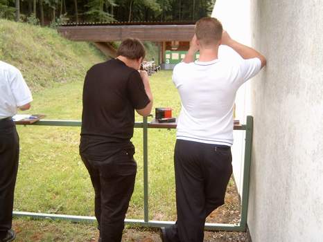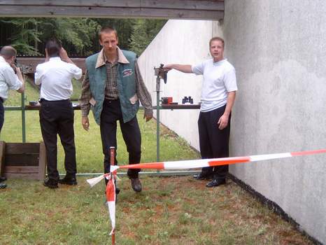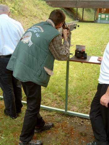 Für die auf diesem Bild sichtlich erkennbaren Unmutsäußerungen kann es 2 Ursachen geben: 1.) das Gewehr ist falsch eingestellt und man schießt ständig daneben 2.) das Bier ist zu warm |