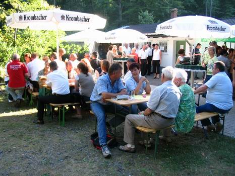 Für die Truppe am Grill und im Rondell ging der Stress jetzt erst richtig los. Der Grill war mit eigenen Vereinsmitgliedern besetzt. Steaks und Würstchen grillen im Akkord. Das Rondell und die Bedienung der Gäste übernahm der Heimatverein, Abteilung "Hüttenbrüder Irlenhecken". | ||||||||||||||||||||||||||||||||||||||||||||||||||||||||||||||||||||||||||||||||