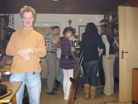 Der Test Stehtische in die Halle einzubringen, um alles ein wenig aufzulockern, wurde mit Erfolg beendet. Zwischen dem linken und dem rechten Bild läßt sich trotz Rauchabzug die Veränderung der "Raumluftgüte" an diesem Abend gut erkennen. | ||||||||||||||||||||||||||||||||||||||||||||||||||||||||||||||||||||||||||||||||