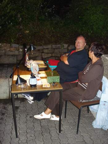 | Marken verkaufen und Grillfleisch zubereiten kann man aber auch im (Halb)Dunklen. Zum Glück gab es keinen weiteren Regen und das Fest lief munter weiter. |