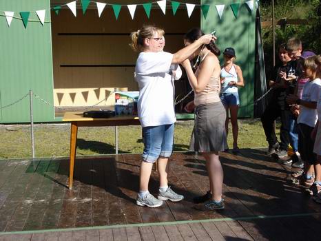 Den Apfel schoss Angelika Spies, die "Vorjahres-Jedermannkönigin". So langsam scheint sie sich an einem Platz auf dem Podest zu gewöhnen. Mal sehen was sie im nächsten Jahr vom Vogel runterschießen wird. Es fehlen ja nur noch Krone und Zepter in ihrer Sammlung. | ||||||||||||||||||||||||||||||||||||||||||||||||||||||||||||||||||||||||||||||||