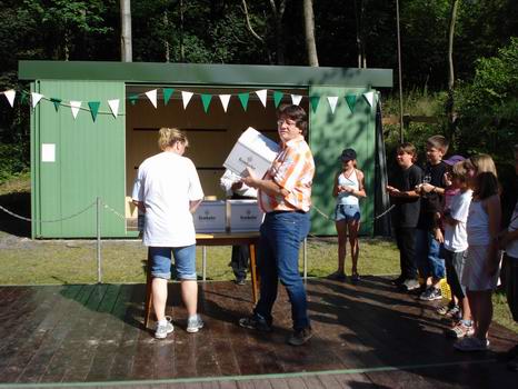Nach dem Ausschießen der Ergebnisse fand die Ehrung wieder auf der Tanzbühne am Festplatz statt. Als erster dürfte sich Dirk Stracke als Kronen-Schütze seinen "Preis" abholen. | ||||||||||||||||||||||||||||||||||||||||||||||||||||||||||||||||||||||||||||||||