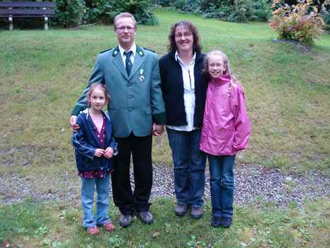 Foto für die Presse ... Axel Wurmbach mit seiner Ehefrau und Königin Silvia Wurmbach, 1. Vorsitzender Uli Bald, Ramona Uhl als auserwählte Jungschützenkönigbegleitung und Julian Denker. | |