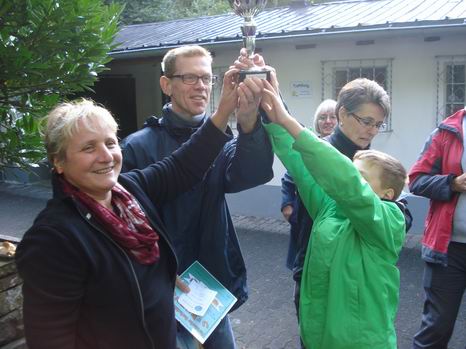 Gewinner des 4. Ferndorfer Dorfschießens war das Team "die wilden Hühner". Ein Hahn hatte sich allerdings ins Team einschlichen. Hier zu sehen mit dem Sieger-Wanderpokal, der von Fest zu Fest, von Sieger zu Sieger weitergereicht wird. | ||||||||||||||||||||||||||||||||||||||||||||||||||||||||||||||||||||||||||||||||