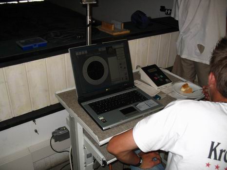 Bei uns im Verein wir der schießsportinteressierten Jugend unter 12 Jahren die Möglichkeit geboten, an einer computergestützen Luftgewehranlage ihr Schießtalent auszutesten. Kurz beschrieben: Geschossen wird hierbei nicht mit einem Projektil, sondern mit einem Infrarotlichtstrahl. Der Schuß wird von einem entsprechenden Sensor auf der anvisierten Zielscheibe erfasst. Auf einem Bildschirm lassen sich dann hinterher Zielverlauf und Schießergebnis nachverfolgen. Die 3 Bilder sind auf unserem Schützenfest 2006 entstanden, bei einem Schießwettkampf der "ganz jungen" Jugend. | ||||||||||||||||||||||||||||||||||||||||||||||||||||||||||||||||||||||||||||||||