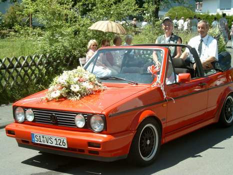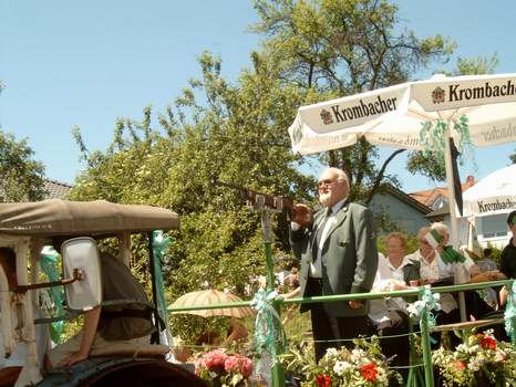 Das zusätzliche Begleitfahrzeug hinter dem Festwagen ... Der durchschnittliche Benzinverbrauch belief sich hinterher übrigens auf weit über 30 Liter auf 100 km. | |