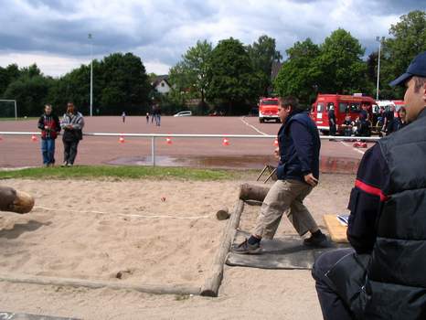 Bei dieser Disziplin ging es schlichtweg darum, ein Stück totes Holz so weit wie möglich in einen großen Sandkasten zu werfen.