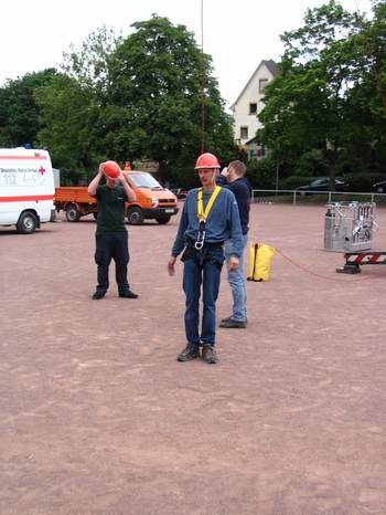 | "Oberbrandmeister" Christian Schüler stellte sich freiwillig als leichtgewichtiger Stapler zur Verfügung. Auf diesem Foto ist die Welt noch in Ordnung ... | ||||||||||||||||||||||||||||||||||||||||||||||||||||||||||||||||||||||||||||||||