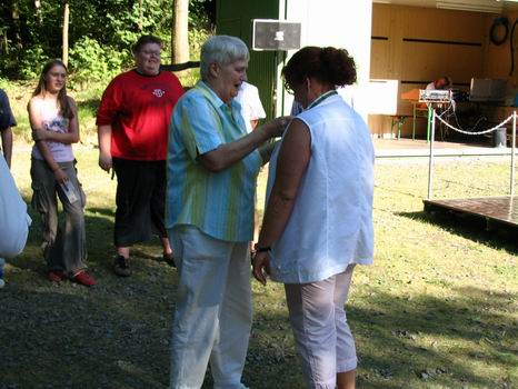 Jedermannschützenkönigin Angelika Spies nimmt ihren Orden entgegen. | |