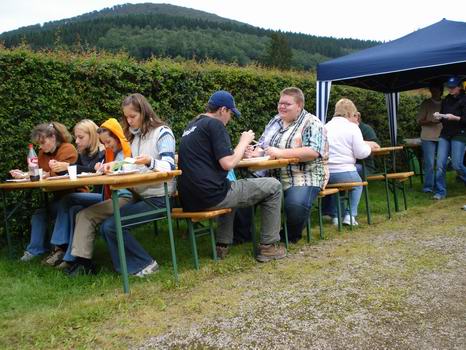 | Am Sonntag morgen (19.08.) traf sich ein bunt zusammengewürfelter Haufen an Schützen und "Best Carwash"-Mitarbeitern um 8:00 Uhr am Raiffeisenparkplatz in Ferndorf. Von dort gings dann mit Verpflegung und Ausrüstung im Hänger nach Gleierbrück zum Angeln. | |||||||||||||||||||||||||||||||||||||||||||||||||||||||||||||||||||||||||||||||||