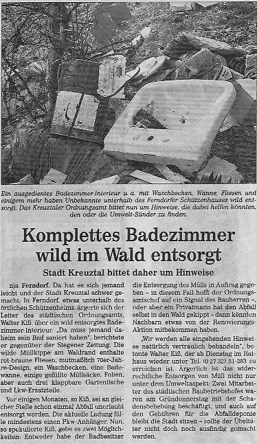 Komplettes Badezimmer im Wald entsorgt