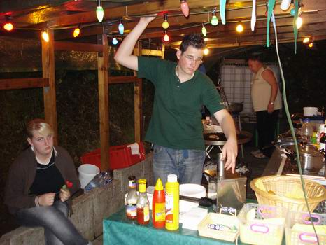 | Marken verkaufen und Grillfleisch zubereiten kann man aber auch im (Halb)Dunklen. Zum Glück gab es keinen weiteren Regen und das Fest lief munter weiter. |
