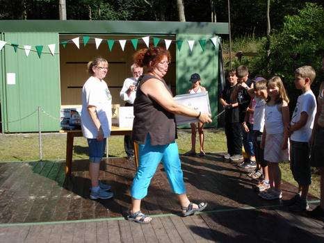 Den Apfel schoss Angelika Spies, die "Vorjahres-Jedermannkönigin". So langsam scheint sie sich an einem Platz auf dem Podest zu gewöhnen. Mal sehen was sie im nächsten Jahr vom Vogel runterschießen wird. Es fehlen ja nur noch Krone und Zepter in ihrer Sammlung. | ||||||||||||||||||||||||||||||||||||||||||||||||||||||||||||||||||||||||||||||||