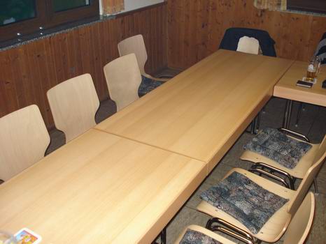 Die neuen Stühle und Tische mußten sich an diesem Abend der ersten größeren Veranstaltung stellen. | |
