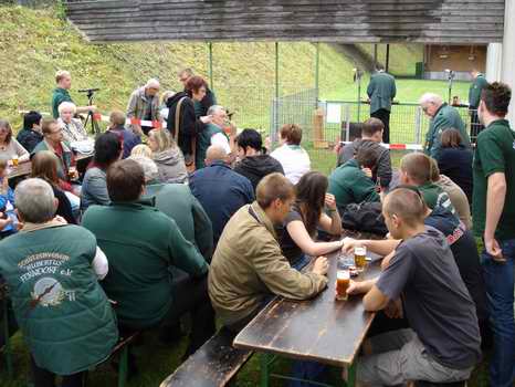 Nach dem Eröffnungsschuss von Elfrun Bernshausen fanden aufgrund des miesen Wetter zu Beginn nicht viele Gäste den Weg zum Vogelschießen. | |