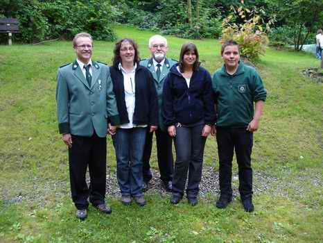 Foto für die Presse ... Axel Wurmbach mit seiner Ehefrau und Königin Silvia Wurmbach, 1. Vorsitzender Uli Bald, Ramona Uhl als auserwählte Jungschützenkönigbegleitung und Julian Denker. | |