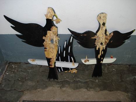 | Für die Holzvögel endete der Tag nicht gut! Von hinten sahen sie noch erheblich schlimmer aus als von vorne. | ||||||||||||||||||||||||||||||||||||||||||||||||||||||||||||||||||||||||||||||||