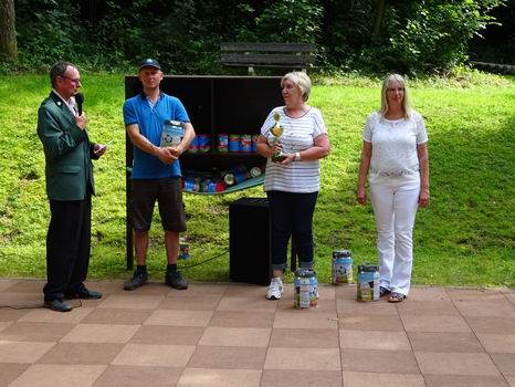 Die erfolgreichen Schützen und Schützinnen vom "Jedermannschießen" am Sonntag bei der Ehrung: V.l.n.r.: 1. Vorsitzene Jürgen Spies, Martin Kurz (Zepter), Marion Kirchhoff (Krone UND Vogel!), Gabi Rehmann (Apfel). Angetreten waren 30 Teilnehmer/-innen. | ||||||||||||||||||||||||||||||||||||||||||||||||||||||||||||||||||||||||||||||||