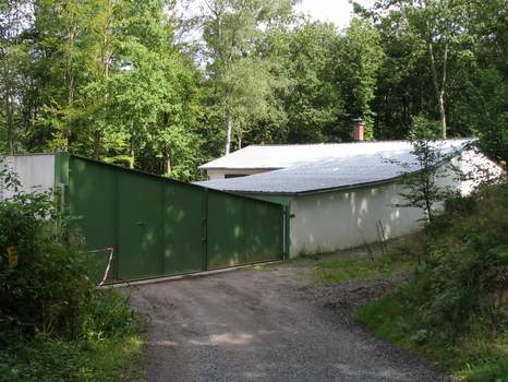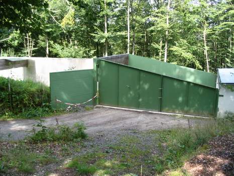 Beim Schießtraining auf der Außenanlage wird der über das Grundstück des Schützenvereins laufende Forstwirtschafts- und Wanderweg durch große, stabile Stahltore verschlossen. Die "Umleitung" erfolgt während dieser Zeit hinter dem Schützenheim vorbei. Außerhalb der Trainingszeiten ist das Tor geöffnet und verschließt sicher die Zugänge zur Schießbahn und zum Schießstand. | ||||||||||||||||||||||||||||||||||||||||||||||||||||||||||||||||||||||||||||||||||||