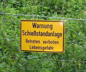 | Blick aus dem Groß- und Kleinkaliberstand auf die 50 und 100 Meter Distanz der Außenanlage; links eine "rangezoomte" Nahansicht. | ||||||||||||||||||||||||||||||||||||||||||||||||||||||||||||||||||||||||||||||||||||