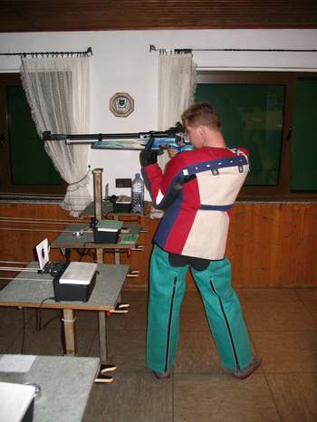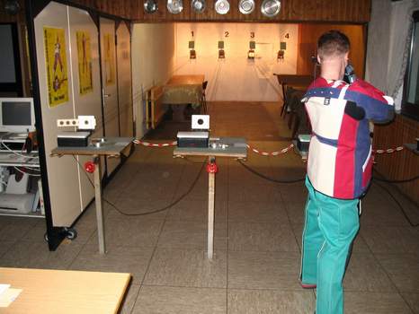 Der Stand für die Luftdruckwaffen befindet sich innerhalb des Schützenheimes und erstreckt sich über 4 Bahnen. Geschossen wird mit der Luftpistole und dem Luftgewehr auf eine Entfernung von 10 Metern. Zugelassen sind Luftdruck-, Federdruck- und CO²-Waffen bis 7,5 Joule Bewegungsenergie, Kaliber 4,5 mm, nur Bleigeschosse. | ||||||||||||||||||||||||||||||||||||||||||||||||||||||||||||||||||||||||||||||||